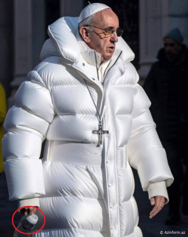 Papanın palto geyindiyi görüntüdə sağ əli görünməyib. Beləliklə, sözügedən görüntünün süni intellekt dəstəkli proqramla yaradıldığı ortaya çıxıb. Papanın palto geyindiyi şəkilləri "Midjourney AI" adlı süni intellektlə dəstəklənən proqramla yaradılıb.