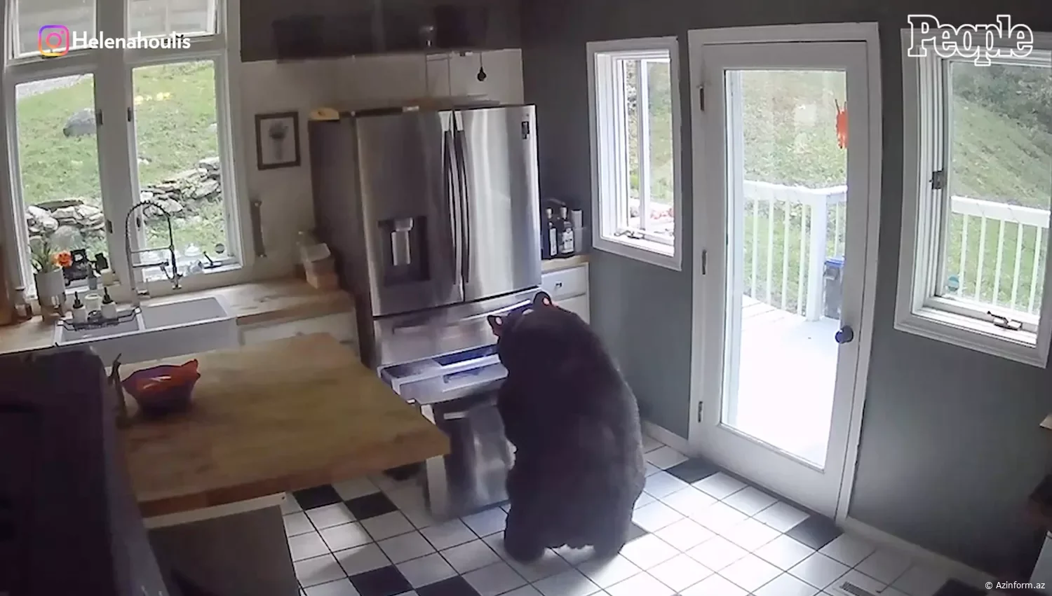 Telefonuna soyuducunun qapısının açıq olduğu xəbərdarlığı mesajı aldıqdan sonra təhlükəsizlik kameralarını araşdıran Helena Riçardson evində ayı olduğunu görüb.