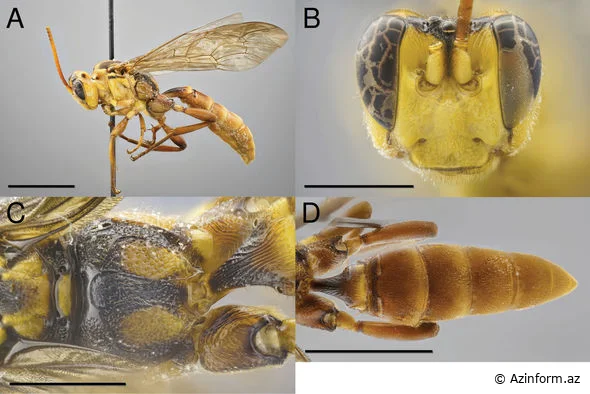 Komanda nəhəng badam formalı başı və naməlum boruyabənzər orqanı olan yetkin bir dişi arı tapıblar. Bu arılar həşəratlardan içərisinə yumurta qoymaq üçün istifadə edirlər. Belə arılar ov kimi müxtəlif heyvanları, o cümlədən tırtılları, hörümçəkləri və böcəkləri seçirlər.
