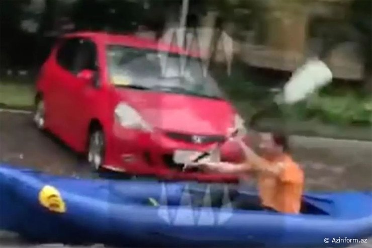 Leysan yağdı: Küçədə qayıq sürdü - VİDEO