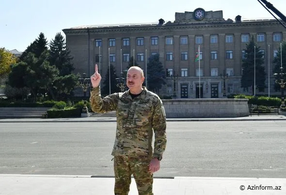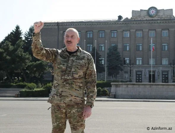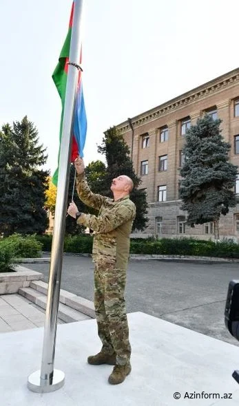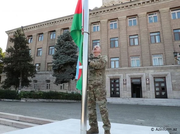Azərbaycan Respublikasının Prezidenti İlham Əliyev oktyabrın 15-də Xankəndi şəhərində Azərbaycan Respublikasının Dövlət Bayrağını ucaldıb və çıxış edib.