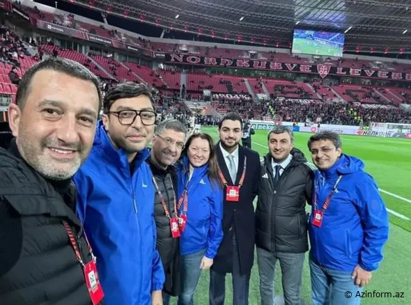 Avropa Liqasının qrup mərhələsinin III turunun “Bayer” - “Qarabağ” matçını stadiondan izləyənlər arasında gənclər və idman naziri Fərid Qayıbov da var.