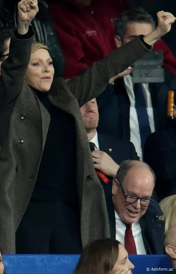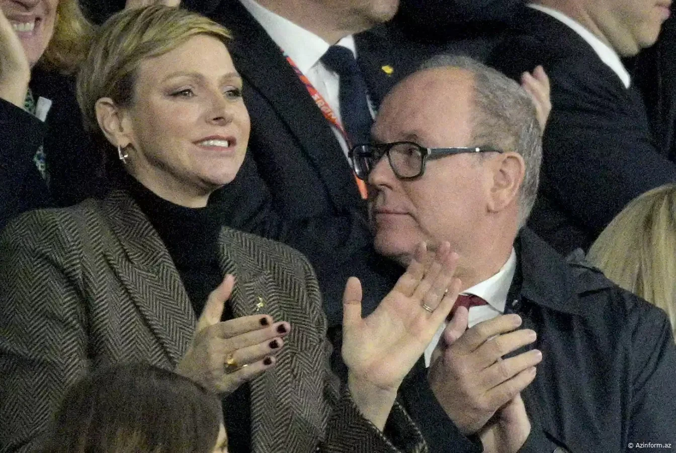 Monako kralı II Albert Parisdəki Stade de Frans stadionunda keçirilən reqbi üzrə Dünya Kubokunun finalı zamanı həyat yoldaşını qucaqlayarkən görüntülənib.