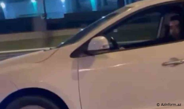 AZİNFORM.AZ bildirir ki, hərəkətdə olan digər sürücülər həmin anları mobil telefonlarına çəkərkən, vəziyyəti görən şəxs dərhal özünü toplayıb.