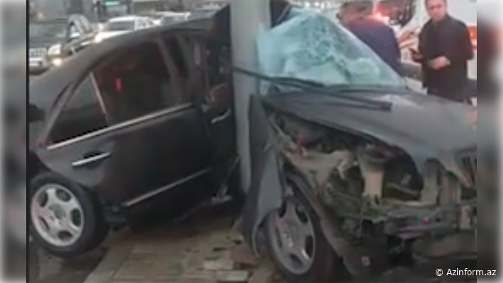 Bakıda "Mercedes" işıq dirəyinə çırpılaraq ikiyə QATLANDI -VİDEO
