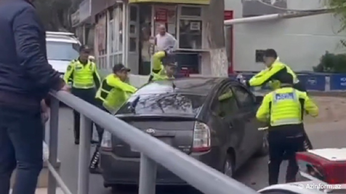 Polisin üzərinə benzin tökən avtoxuliqan həbs edilib - VİDEO