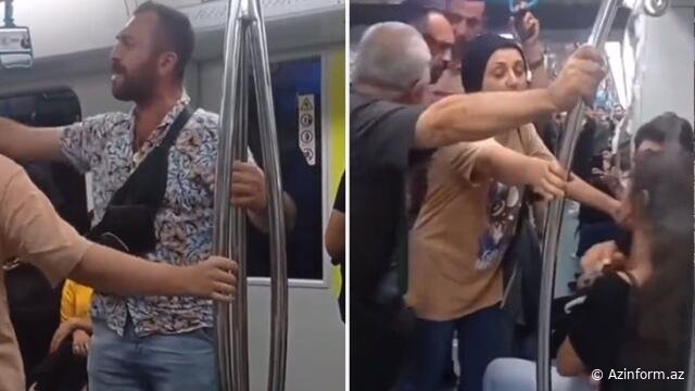 Metroda öpüşən cütlüyü görüb dəli oldu - VİDEO