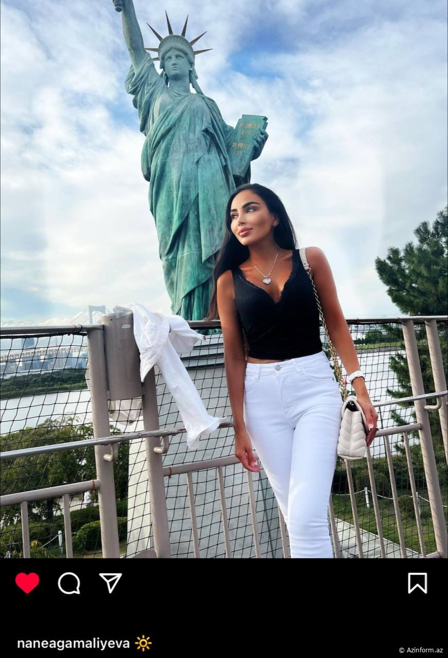 Nyu-Yorku qarış-qarış gəzən Ağamalıyeva şəhərin əsas rəmzlərindən biri sayılan "Azadlıq heykəli" önündə çəkdirdiyi fotosunu izləyiciləri ilə bölüşüb. Nanə sözügedən paylaşımına "günəş" işarəsini yazıb.