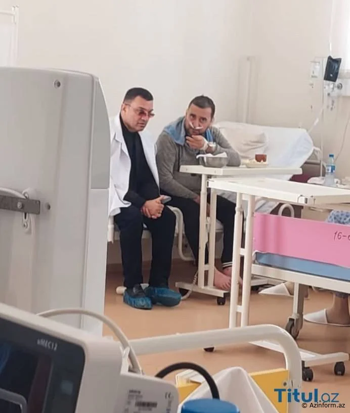 AZİNFORM.AZ xəbər verir ki, fotodan da görünür ki, onu xəstəxanada ziyarət edənlər arasında sənət yoldaşları da var. Sözügedən görüntüdə meyxanaçı Mehman Əhmədli əks olunub: