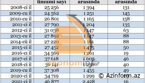 Son 15 ildə qeydə alınan abortların sayı belədir: